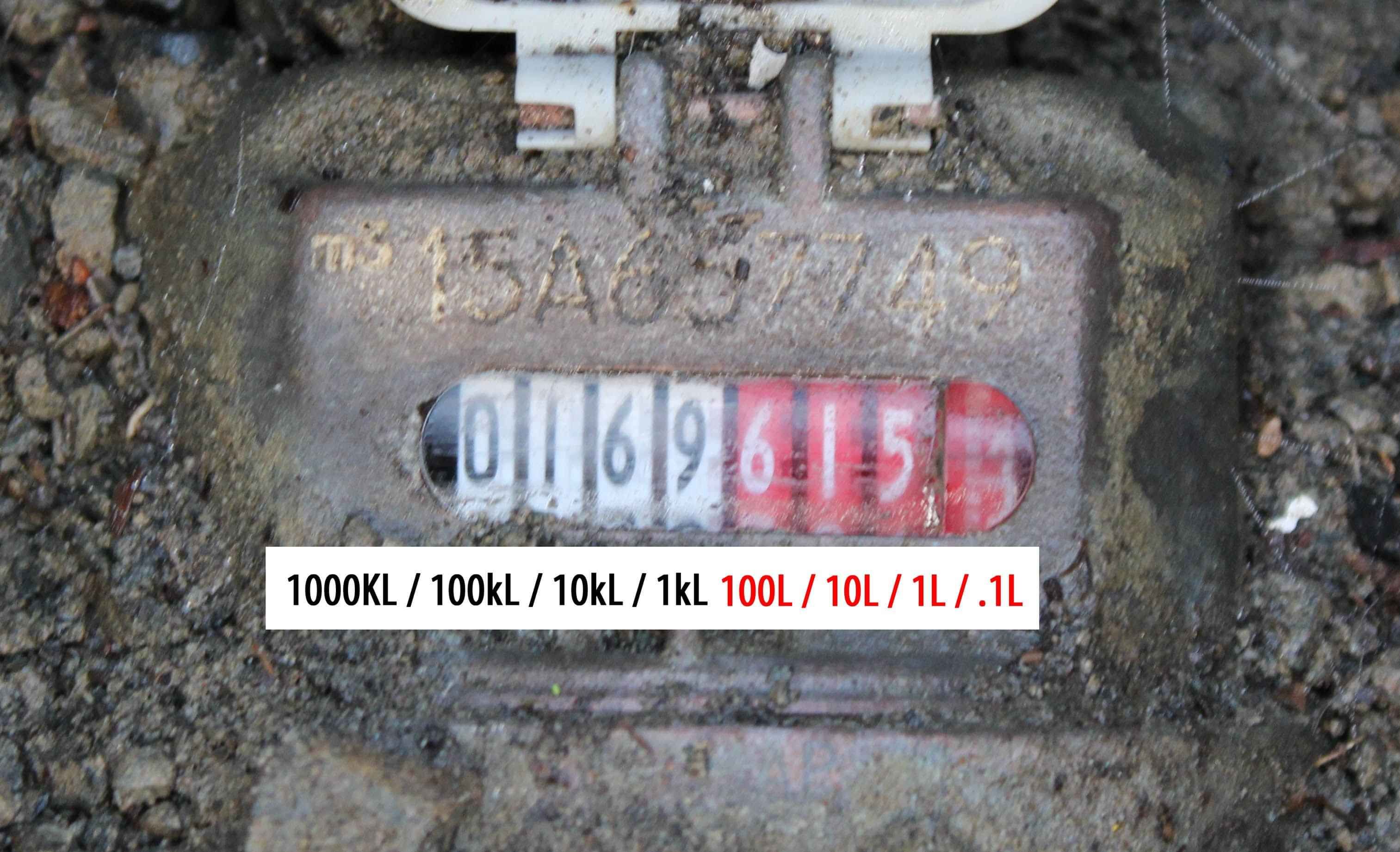 Locate your water meter and check the serial number etched into it against your Watercare bill. Record the numbers in RED on the dial. These indicate 100's L / 10's L / 1L / and 0.1L. Then just wait for a while and read it again. if the dial has turned and no one has been using water, then the water is running/leaking somewhere and then give us a call. 0800 426444