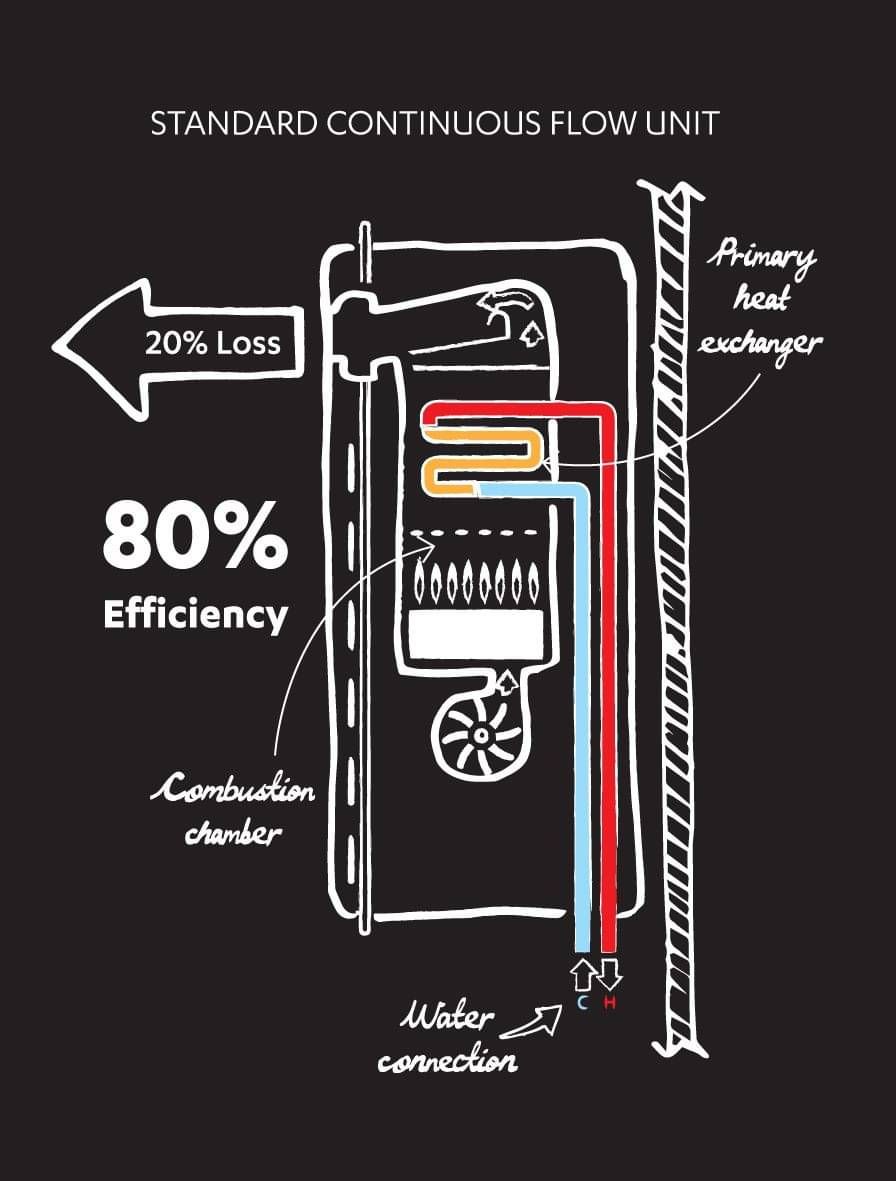 - When a tap or shower is turned on, the system instantly starts working as water starts to flow through the appliance.